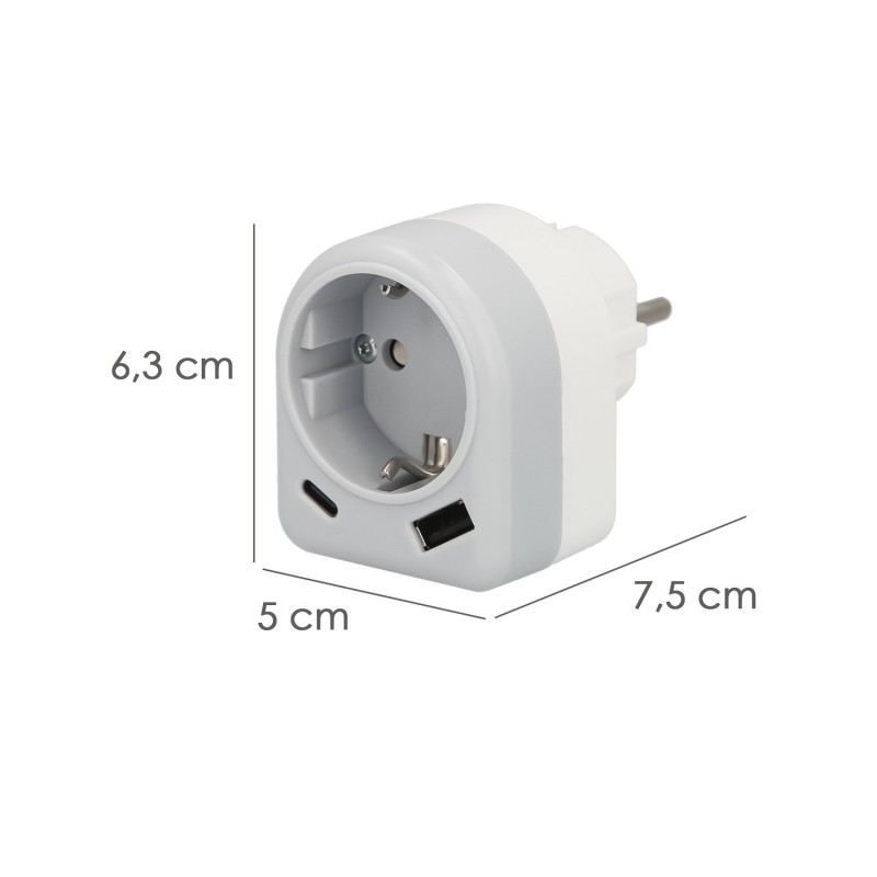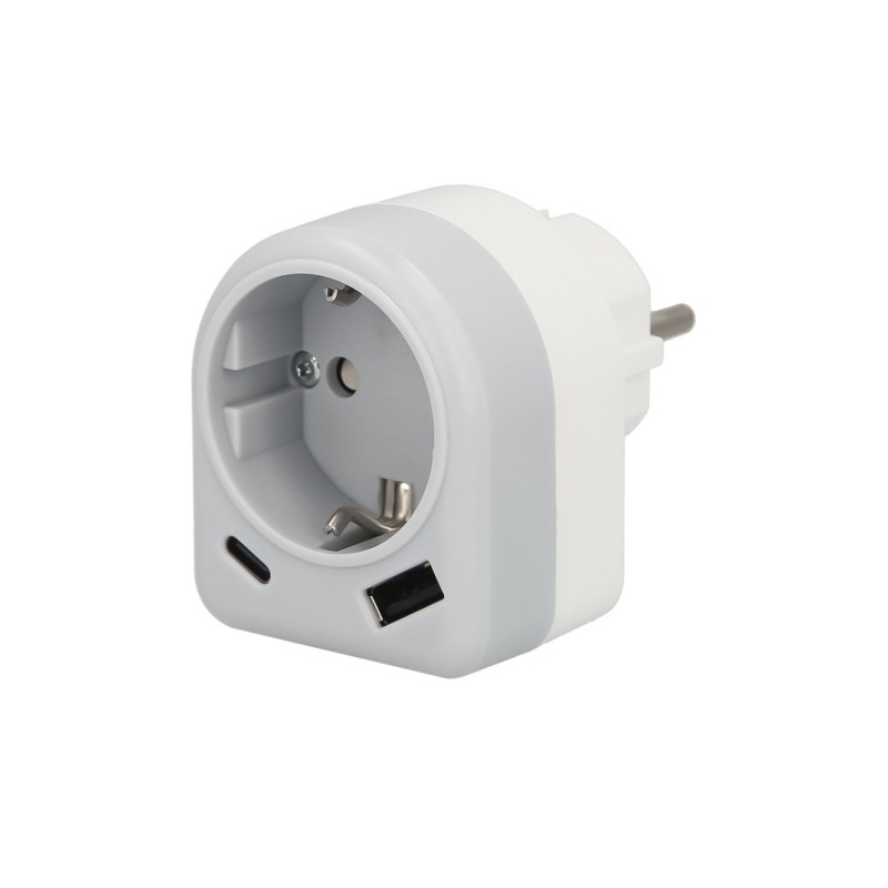 Enchufe / Adaptador Schuko Con 2 Tomas, USB A / C. Potencia Maxima 3680 W. Cargador Moviles, Cargador 2 Tomas, Adaptador Moviles MAURER