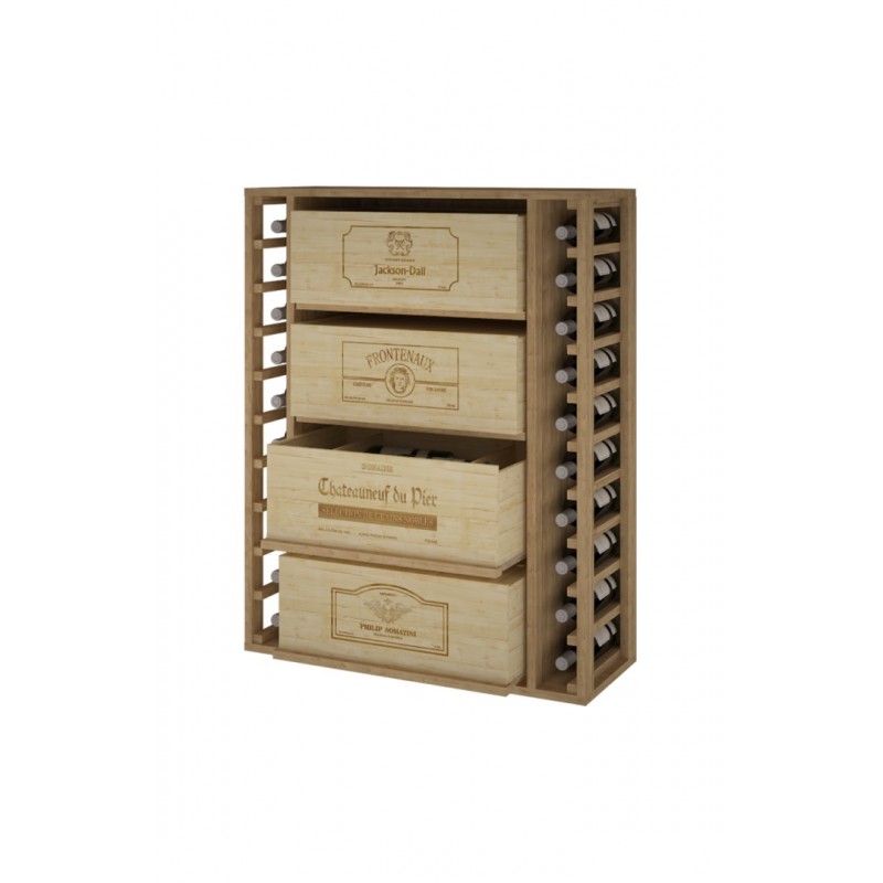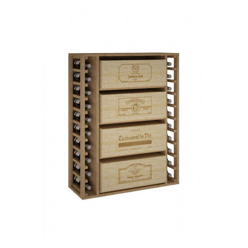BOTELLERO DE MADERA DE PINO PARA BOTELLAS Y CAJAS DE 12. para 20 botellas+4 cajas color Pino oscuro GODELLO