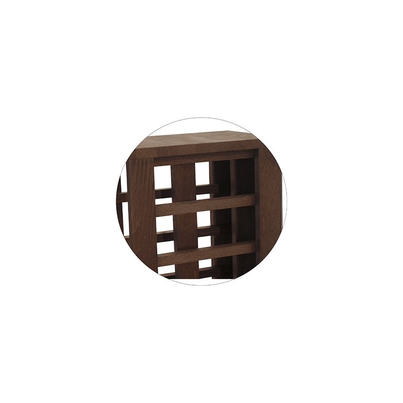 Fabricado con madera de pino o roble, se entrega montado en caja individual. Incluye patas regulables. Incorpora 4 baldas extraibles para cajas de 12 botellas