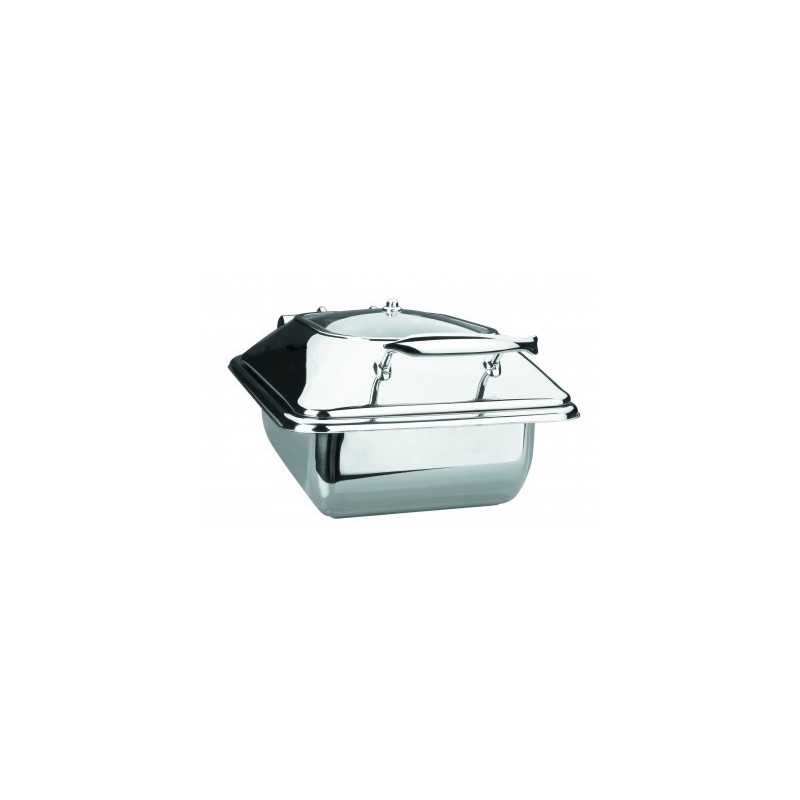 Cuerpo para Chafing Dish Luxe GN 1/2 de Lacor, para mantener a la temperatura adecuada los alimentos presentados en buffets, autoservicios, celebración de eventos... Acero inoxidable 18/10 (alta calidad). Su tamaño es de 43x32 cm, con una altura de 20 cm y una capacidad de 4 litros. La tapa de los Chafing Dish de la línea Luxe dispone de un visor de cristal en la parte superior y cuenta con descenso amortiguado para un cierre suave; es extraíble verticalmente para su limpieza. Las gotas de condensación retornan a la cubeta.