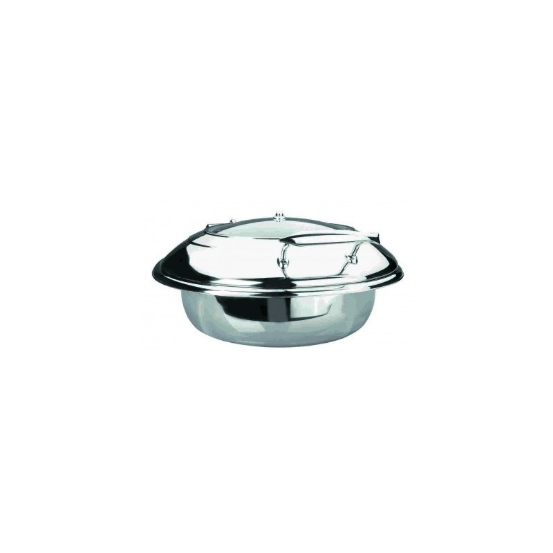 Cuerpo para Chafing Dish Luxe Redondo de Lacor, para mantener a la temperatura adecuada los alimentos presentados en buffets, autoservicios, celebración de eventos... Acero inoxidable 18/10 (alta calidad). Su tamaño es de 50x45 cm, con una altura de 20 cm y una capacidad de 6 litros. La tapa de los Chafing Dish de la línea Luxe dispone de un visor de cristal en la parte superior y cuenta con descenso amortiguado para un cierre suave; es extraíble verticalmente para su limpieza. Las gotas de condensación retornan a la cubeta.