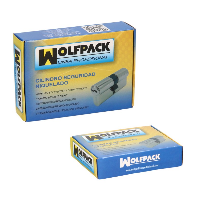 Cilindro Seguridad 30x30 mm. Leva Larga Niquelado Con 5 llaves WOLFPACK LINEA PROFESIONAL