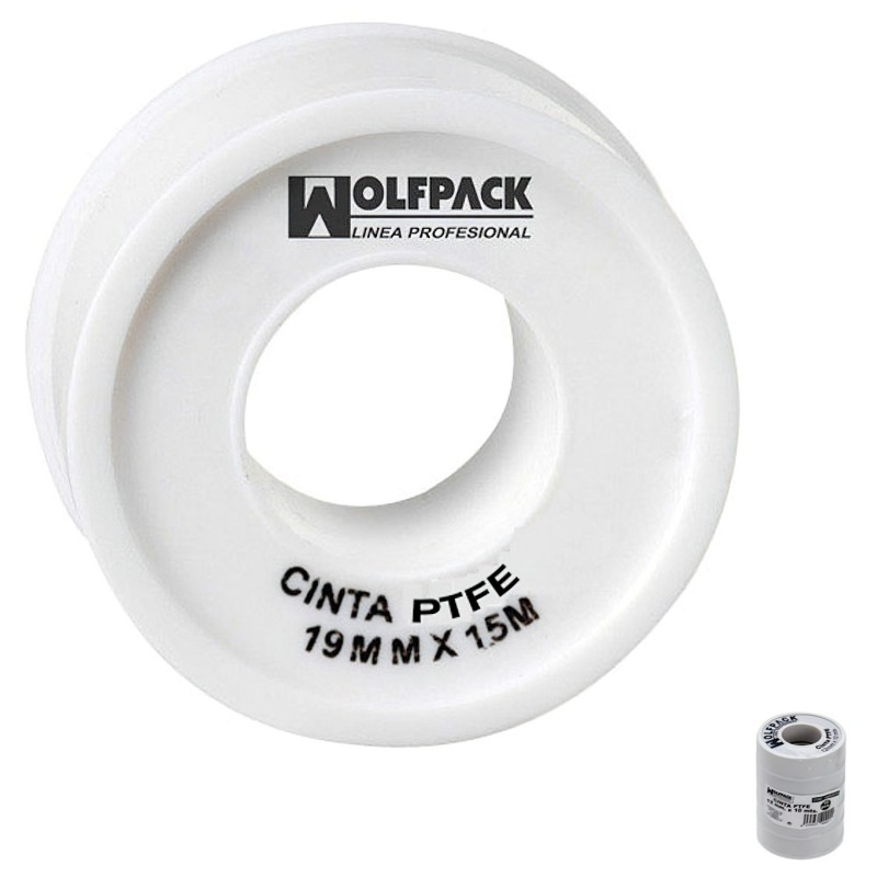 Cinta PTFE Wolfpack 19 mm. x 50 m. Grueso. (Paquete de 5 Rollos) WOLFPACK LINEA PROFESIONAL