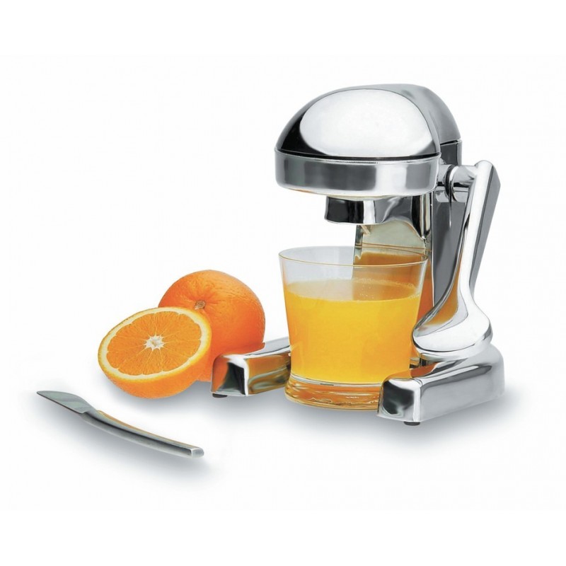 Exprimidor zumo bajo totalmente profesional fabricado en acero inoxidable 18/10, de sencillo manejo, solo tiene que introducir la fruta y bajar la palanca para que salga automaticamente el zumo exprimido. Facil limpieza. Ideal para la elaboracion de cocteleria. No apto para lavavajillas automatico. Dimensiones: 21x18cm. Altura: 21cm.