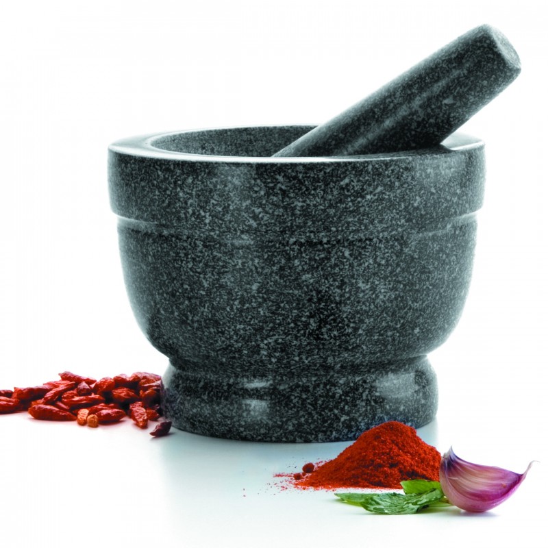 Mortero con mano de granito Lacor. Exterior de granito pulido para fácil limpieza
