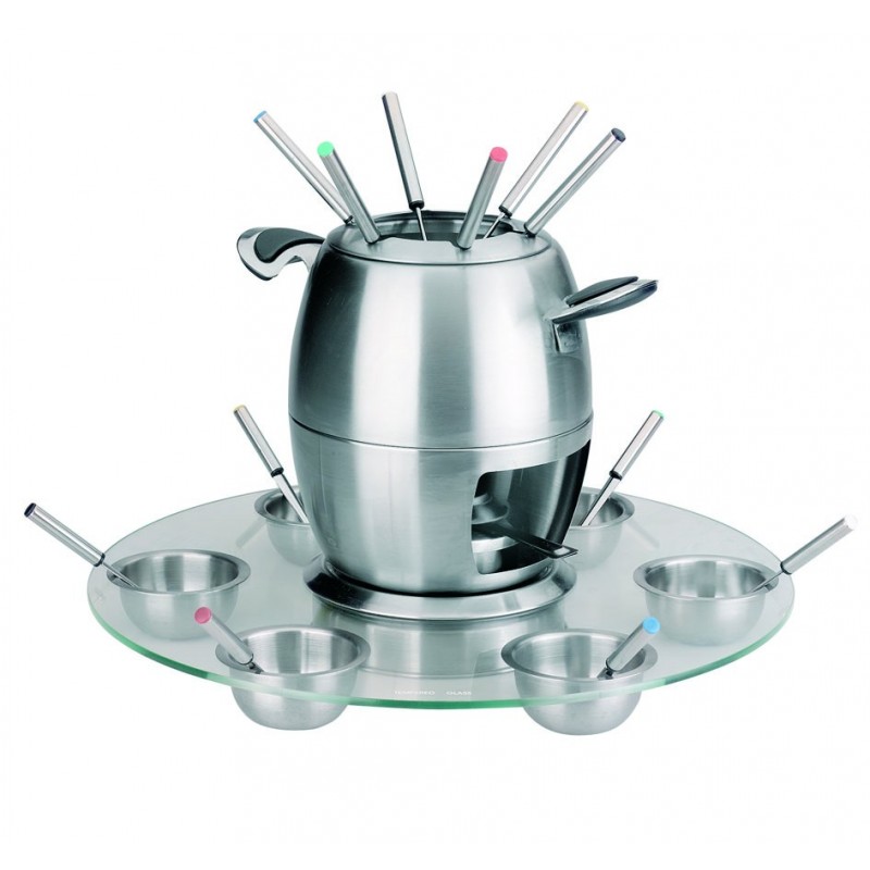Fondue base cristal 6 pax.Pieza de diseño integrado y cómodo
