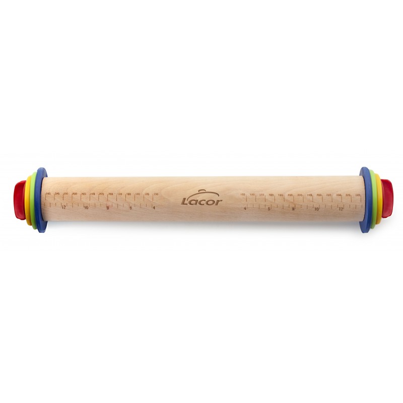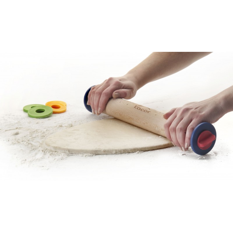 Rodillo de amasar con anillas de Lacor. Incluye 3 discos extraibles
