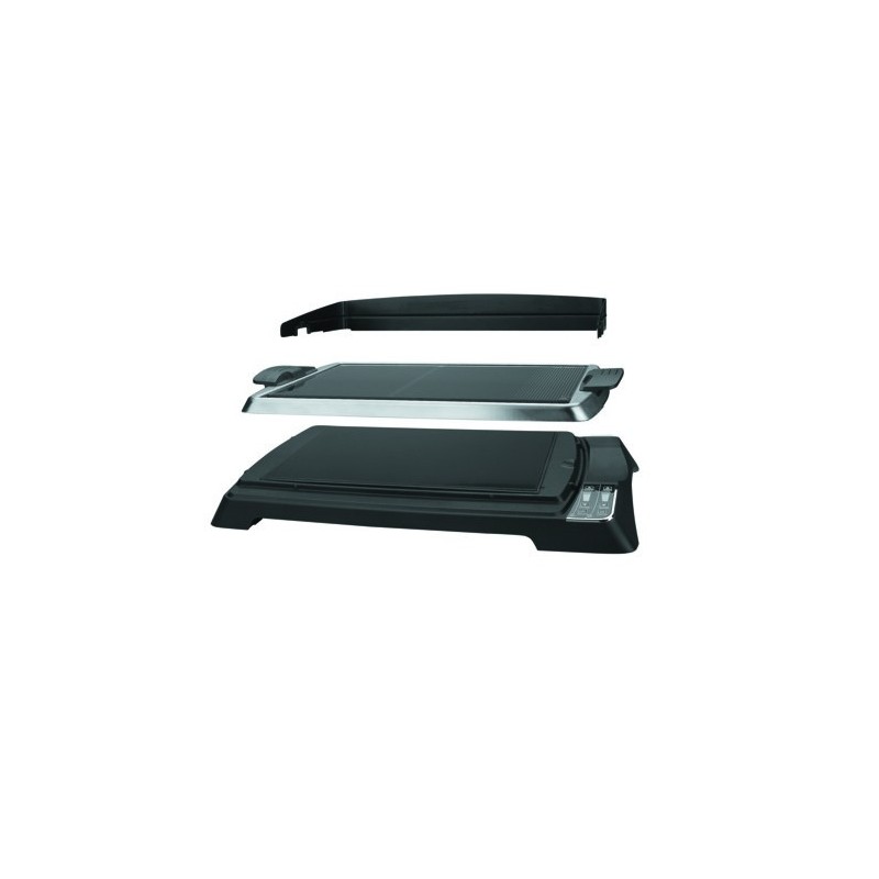 Plancha lavable en lavavajillas. Ranura recogedora de grasas. Pies antideslizantes,apoyos para la inclinacion de la placa y asas atermicas para su seguridad. Ligera y desmontable para una rapida y facil limpieza.