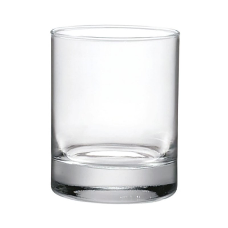 Vaso con formato cilíndrico en vidrio transparente soplado. Resistencia al choque mecánico. Apto para lavavajillas.