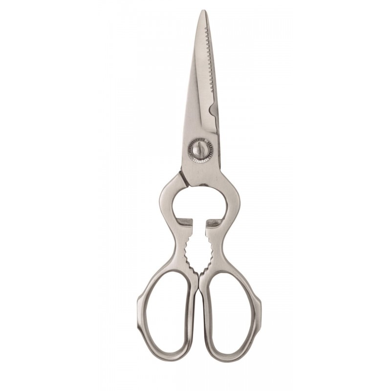 Tijera profesional de Lacor con una resistencia de entre 50 y 54 HRc. Es perfecta para el hogar, ya que incluye abrebotellas y cascanueces y permite tres usos distintos en el mismo espacio.