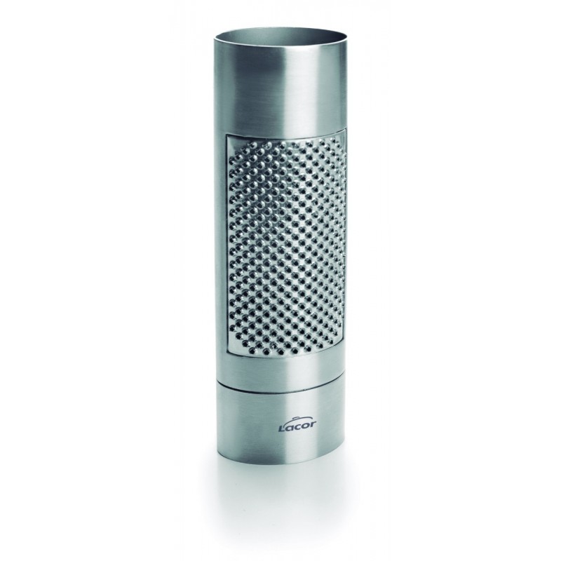 Rallador de nuez moscada de Lacor. Fabricado en acero inoxidable, dispone de un contenedor para almacenar las especias enteras o ya ralladas.