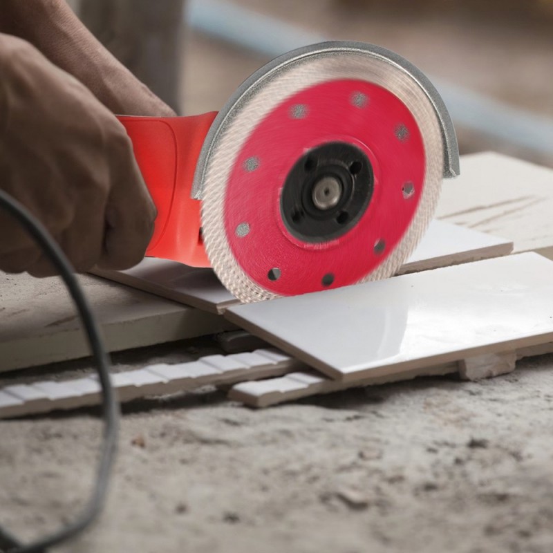 - Disco diamantado versátil para cortar materiales duros como porcelánicos, gres, cerámica, solería, etc.
