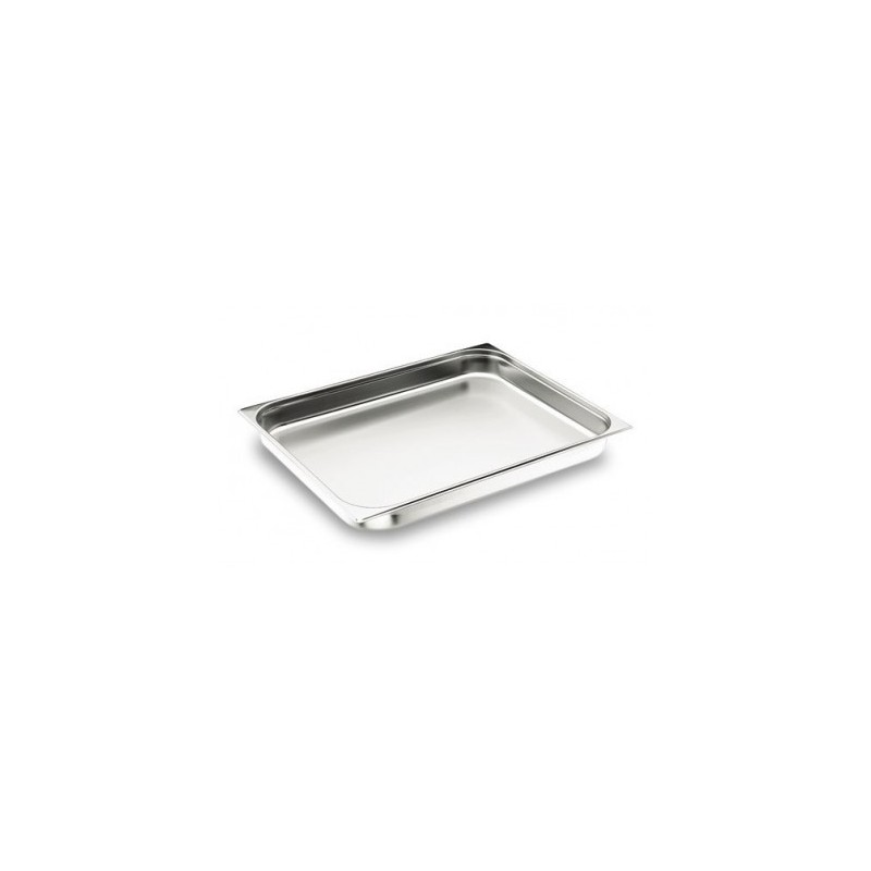 CUBETA GN 2/1 ACERO INOXIDABLE 18/10En nuestra página encontrará toda la gama de cubetas Gastronorm que Lacor pone a disposición de profesionales de hostelería y restauración.Esta cubeta Gastronorm está fabricada en acero inoxidable 18/10, aleación con 18% de cromo y 10% de níquel, que ofrece un nivel de calidad y resistencia superior al acero convencional y garantiza una excelente resistencia a la corrosión y a los ácidos alimentarios y sales. En nuestra página encontrará también la línea de cubetas Gastronorm en acero inoxidable Serie Aisi 200, con precios más ajustados.En el desplegable al lado de la fotografía podrá seleccionar entre las medidas disponibles para las cubetas GN 2/1 (530 x 650 mm) en acero inoxidable 18/10:ReferenciaAltura (mm)Capacidad (l) 66002206.50Bandeja660404011Bandeja660656518.90Bandeja6601010031.50 6601515044.90 6602020060 La normativa europea EN-631 establece bajo el término Gastronorm (GN) el formato estándar para recipientes utilizados en el tratamiento de alimentos en cocinas profesionales, en cualquiera de sus procesos: preparación - cocción - almacenaje - conservación - transporte - limpieza. Esta estandarización permite optimizar la ordenación y máxima utilización de espacio en los equipos de cocina, transporte y almacenaje: estanterías de almacenamiento, carros, armarios, hornos, frigoríficos, buffet…El formato básico es el GN 1/1: 530 x 325 mm. Los demás son fracciones o múltiplos de ese tamaño, resultando esta lista:GN1/1 : 530 × 325 mmGN1/2 : 325 × 265 mmGN1/3 : 325 × 176 mmGN1/4 : 265 × 162 mmGN1/6 : 176 × 162 mmGN1/9 : 108 × 176 mmGN2/1 : 650 × 530 mmGN2/3 : 354 × 325 mmGN2/4 : 156 x 530 mmAdemás de largo y ancho, Gastronorm también establece profundidades estándar: 10, 20, 40, 65, 100, 150 y 200 mm (y por tanto las capacidades de los recipientes)