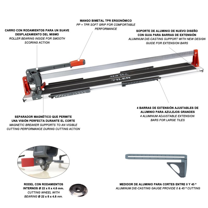 Corta Azulejos Wolfpack Profesional Base Aluminio 1200 mm. Azulejos Grandes WOLFPACK LINEA PROFESIONAL