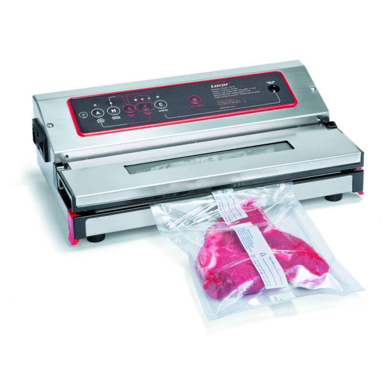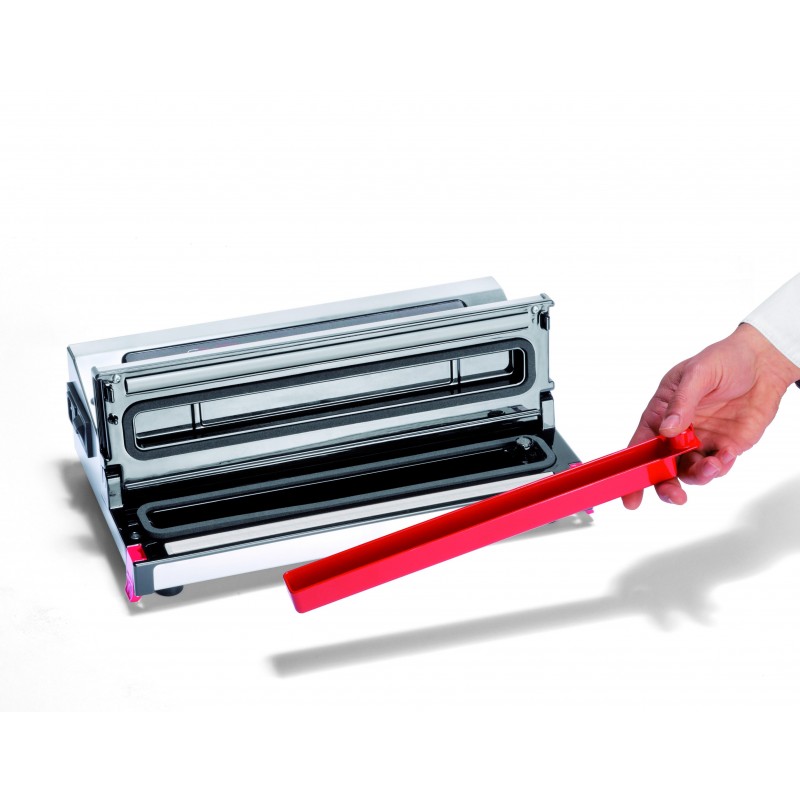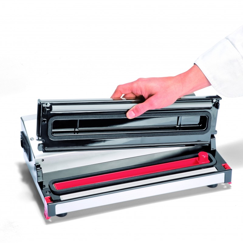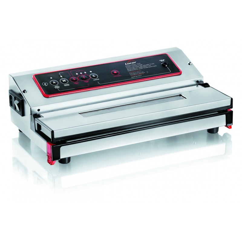 Maquina de Vacío Profesional Envasado al vaci?o de productos alimenticios como legumbres, carnes, pescados, etc... Admite la aspiracio?n de li?quidos y salsas en el envasado, sin la necesidad de congelarlos antes. Barra de sellado sin cables. Barra de sellado 32 cm. Fa?cil extraccio?n de la tapa para su limpieza. Bandeja de li?quidos extrai?ble y apta para el lavavajillas Características: - Potencia: 130W - Presión: 0,9 bar.