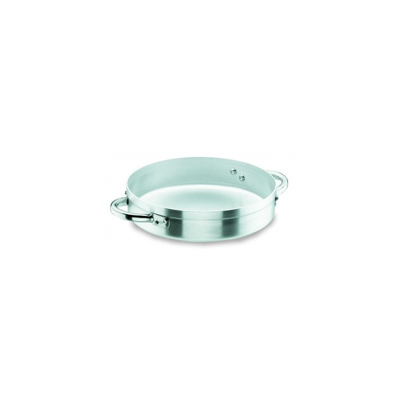 La serie Chef-Aluminio de Lacor ofrece una batería de cocina profesional diseñada para hostelería.Piezas fabricadas en aluminio puro 99,5%, material muy efectivo como conductor de calor. Asas y mangos atérmicos en tubo de acero inoxidable 18/10. Producto apto para cocinas de gas, eléctrica y vitrocerámica.La paellera Chef-Aluminio de Lacor se fabrica en 11 capacidades; podrá seleccionar la que desee en el desplegable al lado de la fotógrafa. Para ayudarle en su elección le ofrecemos las medidas correspondientes:Diámetro (cm)Altura (cm)Litros2874.3306.54.753275.53476.35367.57.45387.58.640810.0545812.550815.555921601028