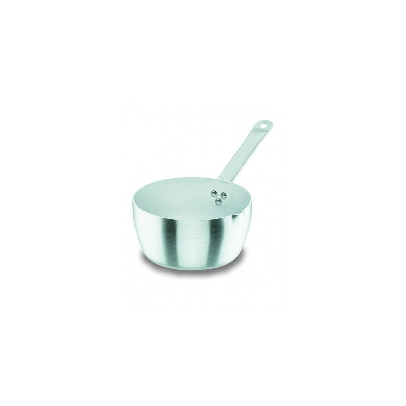 La serie Chef-Aluminio de Lacor ofrece una batería de cocina profesional diseñada para hostelería.Piezas fabricadas en aluminio puro 99,5%, material muy efectivo como conductor de calor. Asas y mangos atérmicos en tubo de acero inoxidable 18/10. Producto apto para cocinas de gas, eléctrica y vitrocerámica.El cazo bombado Chef-Aluminio de Lacor se fabrica en 7 capacidades; podrá seleccionar la que desee en el desplegable al lado de la fotógrafa. Para ayudarle en su elección le ofrecemos las medidas correspondientes:Diámetro (cm)Altura (cm)Litros1681.51892.320102.5221132412426135.328146.5