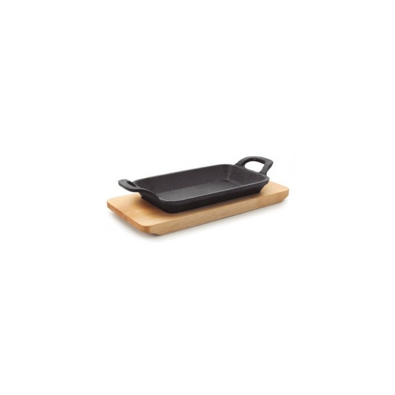 Construida en una sola pieza de hierro fundido, la mini plancha grill lisa rectangular modelo Magma de Lacor es pequeña y manejable. Está recubierta con una capa de aceite vegetal para una mayor antiadherencia y resulta resistente y muy fiable.La mini plancha grill lisa rectangular modelo Magma de Lacor sirve para un uso en el hogar, pero también para uno profesional en restaurantes y otros locales de hostelería. Permite tanto cocinar como llevar la comida a la mesa aún caliente, y mantiene el calor de los alimentos durante mucho tiempo.La mini plancha grill lisa rectangular modelo Magma de Lacor dispone de una base de madera a medida para presentar la comida aún caliente, idóneo para guisos que deban conservar la temperatura y para platos cuya estética remita al recetario tradicional. Asimismo, la mini plancha grill lisa rectangular modelo Magma de Lacor resulta perfecta para colocar sobre una fuente de calor en platos tipo fondue, que deben seguir siendo cocinados en la mesa.Referencia Medida (cm) Altura (cm) 25874 22,5x10 2,5