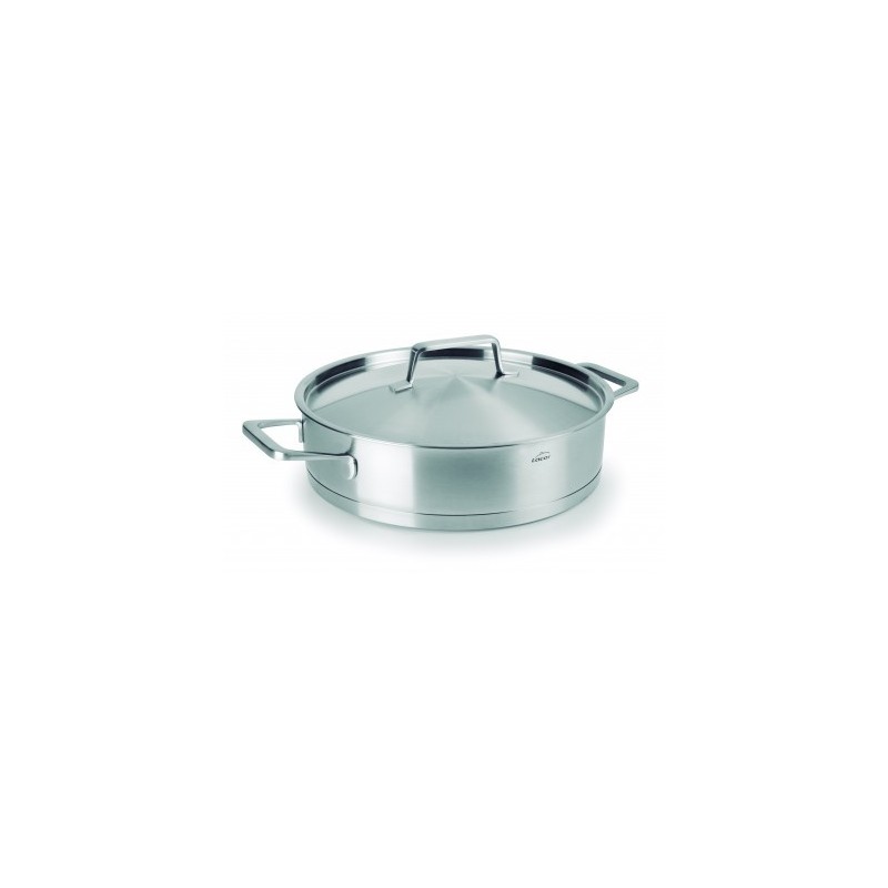Asas y mangos ergonómicos de acero inoxidable fundidoMáxima garantía en cuanto a resistencia, durabilidad e higieneAcabado interior y exterior lijado satinado.Marcaje de capacidades en el interior (Litros)Fondo termodifusor sándwich (Inox 18/10 - Aluminio - Inoxidable).Distribución rápida y uniforme del calor Aptas para todos los fuegos (incluido inducción y horno).Aptas para el lavavajillas