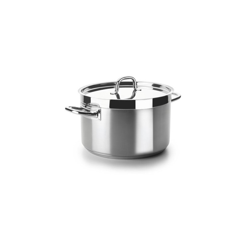 La batería de cocina Chef-Luxe de Lacor está diseñada y pensada para uso profesional, no obstante sus características la convierten en una excelente aliada en el hogar:El cuerpo de las piezas es de acero inoxidable 18/10 (18% de cromo y 10% de níquel, aleación que ofrece un alto nivel de calidad y resistencia superior al acero convencional). Ofrece una excelente resistencia a la corrosión y a los Ácidos alimentarios y sales. Su borde extra-grueso reforzado endurece el artículo y permite un vertido perfecto. El acabado interior y exterior es satinado, con reborde terminado en pulido espejo. Los mangos y asas están soldados de tubo inoxidable 18/10 hermético, anticalentamiento y ergonómico. Cuenta con un fondo termodifusor sándwich (una capa de aluminio entre 2 capas de acero) y capsulado: absorción total de las calorías. Producto válido para cocinas de gas, eléctrica, vitrocerámica y de inducción. Fácil limpieza: el Ángulo del fondo permite una limpieza sencilla, y accesibilidad alrededor de las asas. Certificación alimentaria europea: RGS 3901841SS La cacerola alta con tapa Chef-Luxe se fabrica con 8 capacidades; podrá seleccionar la que desee en el desplegable al lado de la fotógrafa. Para ayudarle en su elección le ofrecemos las medidas correspondientes:Diámetro (cms)Altura (cms)Litros2013424146.72817.510.7321814.63621.521.84024.5304527.543.7503058.8