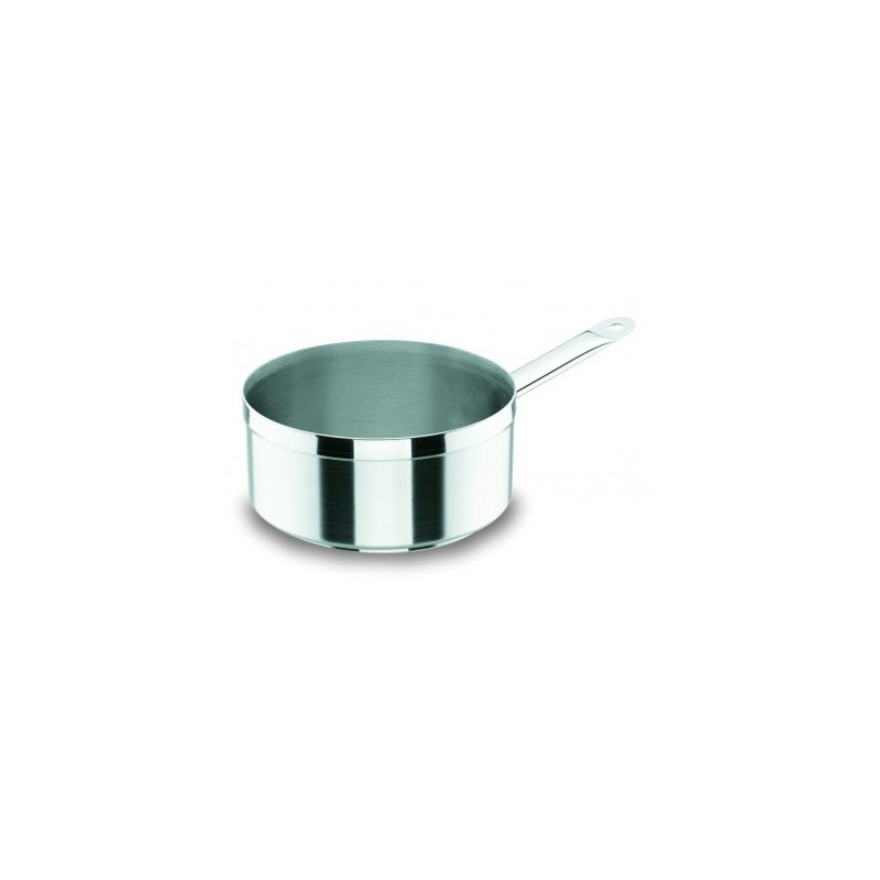 El diseño de la batería de cocina Chef-Luxe de Lacor está pensado para uso profesional, pero por sus prestaciones dará un magnífico resultado en el hogar:El cuerpo de las piezas es de acero inoxidable 18/10 (18% de cromo y 10% de níquel, aleación que ofrece un alto nivel de calidad y resistencia superior al acero convencional). Ofrece una excelente resistencia a la corrosión y a los Ácidos alimentarios y sales. Su borde extra-grueso reforzado endurece el artículo y permite un vertido perfecto. El acabado interior y exterior es satinado, con reborde terminado en pulido espejo. Los mangos y asas están soldados de tubo inoxidable 18/10 hermético, anti calentamiento y ergonómico. Cuenta con un fondo termo difusor sándwich (una capa de aluminio entre 2 capas de acero) y capsulado: absorción total de las calorías. Producto válido para cocinas de gas, eléctrica, vitrocerámica y de inducción. Fácil limpieza: el Ángulo del fondo permite una limpieza sencilla, y accesibilidad alrededor de las asas. Certificación alimentaria europea: RGS 3901841SSEl cazo recto Chef-Luxe de Lacor se fabrica en 7 capacidades; podrá seleccionar la que desee en el desplegable al lado de la fotógrafa. Para ayudarle en su elección le ofrecemos las medidas correspondientes:Diámetro (cms)Altura (cms)Litros1270.75147.51.101681.61892.2520102.924104.2528116.7