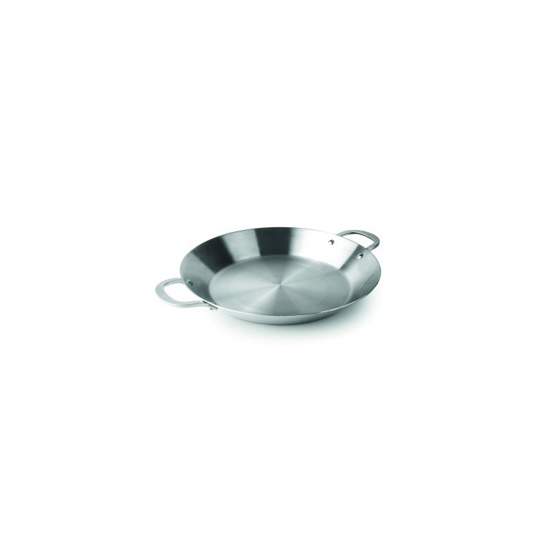 La Paellera trichef de Lacor es la elección perfecta para los amantes de la cocina que desean obtener resultados profesionales. Con su diseño innovador y características excepcionales, esta paellera garantiza una distribución rápida y uniforme del calor, lo que ahorra energía y permite cocinar de manera eficiente.El interior de aluminio de la paellera asegura una distribución homogénea del calor, evitando puntos calientes y garantizando una cocción uniforme en toda la superficie. Esto significa que cada grano de arroz estará perfectamente cocido, mientras que los ingredientes se cocinarán a la perfección.Las asas ergonómicas fabricadas en fundición de acero inoxidable 18/10 de alta calidad proporcionan un agarre seguro y cómodo, permitiendo un manejo fácil y seguro incluso cuando está caliente. Ya sea que esté preparando una auténtica paella española o cualquier otro plato delicioso, esta paellera le brinda el control total sobre su cocina.Además, la Paellera trichef es apta para todo tipo de cocinas, especialmente para la inducción. Puede utilizarla en cocinas de inducción, vitrocerámicas, gas y eléctricas sin ningún problema. También es apta para el horno (hasta 260ºC) y lavavajillas, lo que facilita su limpieza después de cada uso.Con la Paellera trichef de Lacor, puede disfrutar de deliciosas paellas y platos gourmet en la comodidad de su hogar. Su resistencia, durabilidad e higiene son inigualables, lo que la convierte en una inversión a largo plazo para cualquier entusiasta de la cocina. Elige entre las dos medidas disponibles, 34 cm y 40 cm de diámetro, y descubre una nueva forma de cocinar con esta paellera de alta calidad.