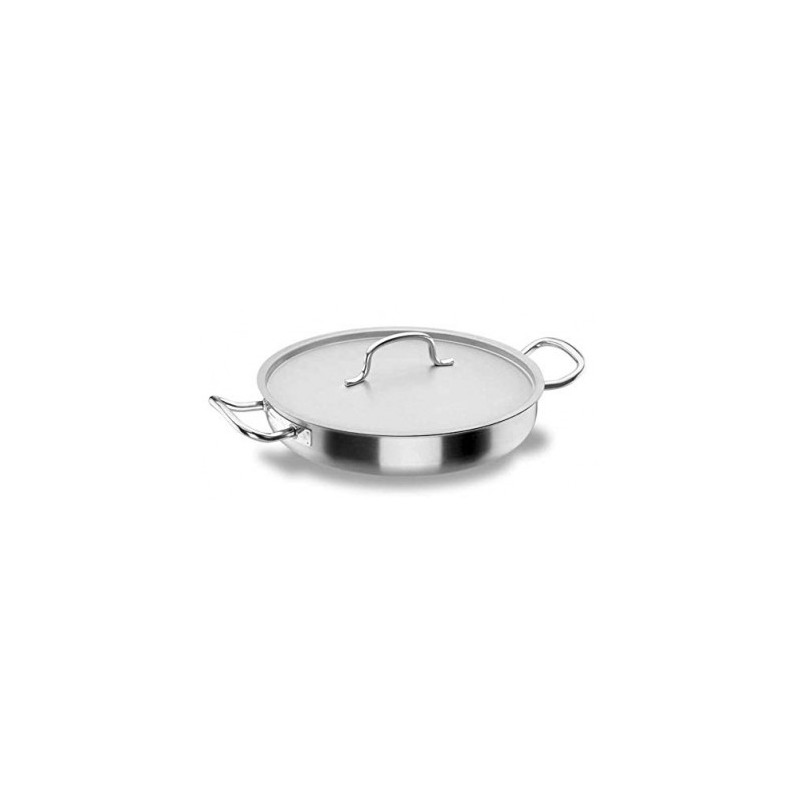 La batería de cocina Chef-Classic de Lacor está conformada por piezas de altísima calidad orientadas a un uso profesional. Está íntegramente fabricada en acero inoxidable 18/10 (de mayor calidad y durabilidad que el acero inox convencional), tanto los cuerpos como las asas y los mangos. Es extremadamente resistente contra la corrosión, la oxidación, los ácidos y la sal. Las piezas tienen un grosor entre 0.7 y 1.2 mm que garantizan una gran resistencia ante todo tipo de imprevistos. Los acabados son mates, tanto el interior como el exterior. Los mangos y las asas son resistentes y ergonómicos y permiten sujetar fácilmente las piezas.Las piezas de la batería Chef-Classic tienen un termodifusor capsulado de tipo sándwich (con dos capas de acero y una de aluminio), para absorber totalmente las calorías. Se trata de productos válidos para cocinas de todo tipo: inducción, vitro, gas y eléctrica y aptas para introducir en el horno. Las piezas con diámetro de 60 cm no funcionan con inducción.Se trata de piezas higiénicas que permiten una limpieza fácil, tanto por el fondo como por las asas, de forma que se evita la acumulación de restos. Toda la pieza (cuerpo, asas y mangos) fabricada en Acero Inoxidable 18/10 Fondo Termodifusor (Inox 18/10 - Aluminio - Inox). Espesor 0,7 - 1,2 mm Tapas diseñadas para el ahorro energético Apta para todos los tipos de cocina (incluida inducción y horno) * Excepto Ø60 Acabado mate interior y exterior Máxima garantía en cuanto a resistencia, durabilidad e higieneLa Paellera chef inox sin tapa de Lacor está disponible en las siguientes capacidades:Referencia Diámetro (cm) Altura (cm) Espesor (mm) Largo 50624S 24 6 0,8 2,7 50628S 28 6 0,8 3,6 50632S 32 6 0,8 5 50636S 36 7 1 7,1 50640S 40 8 1 10 50645S 45 8,5 1 13,5 50650S 50 9 1 17,6 *50660S 60 9 1 25,4* NO inducción