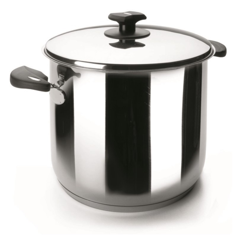 Esta olla súper alta con tapa forma parte de la batería doméstica Nova-Ladycor: una de las mejores selecciones para quienes necesiten una gama muy amplia. Apta para cocinar sin agua ni grasas.