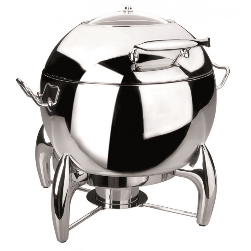 Para mantener a la temperatura adecuada los alimentos presentados en buffets, autoservicios, celebración de eventos... Lacor presenta el Chafing Dish Luxe Sopa en acero inoxidable 18/10 (alta calidad). Su diámetro es de 45 cm con una altura de 38 cm y una capacidad de 11,60 litros. Soporte con 1 contenedor de combustible. La tapa de los Chafing Dish de la línea Luxe dispone de un visor de cristal en la parte superior y cuenta con descenso amortiguado para un cierre suave; es extraíble verticalmente para su limpieza. Las gotas de condensación retornan a la cubeta. Además los chafing dish Luxe disponen de salsera lateral (ref. R69099C) para sujetar espumaderas o cacillos. Son aptos para todo tipo de fuentes de calor (gas, vitro, eléctrico e inducción; disponible aro complementario ref. R69100B para uso con placa de inducción ref. 69131)