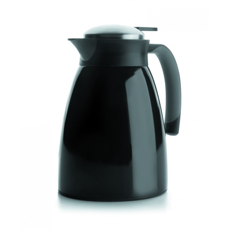 El servidor termonegro de lacor cuenta con cuerpo de doble paredfabricado en acero inoxidable La tapa aislante dispone de un pulsador que mantiene el calor y dispensa facilmente las bebidas.