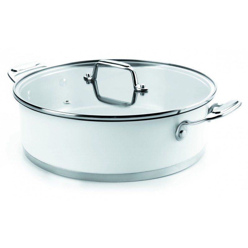 Tartera con tapa para uso domestico Ideal para los amantes de la cocina casera. Mango ergonomico, imagen retro, distribucion rapida y uniforme del calor que favorece el ahorro de energia. Disponible en las siguientes medidas: øcms H. Cm. litros 24 7,00 3,00 28 8,00 4,70