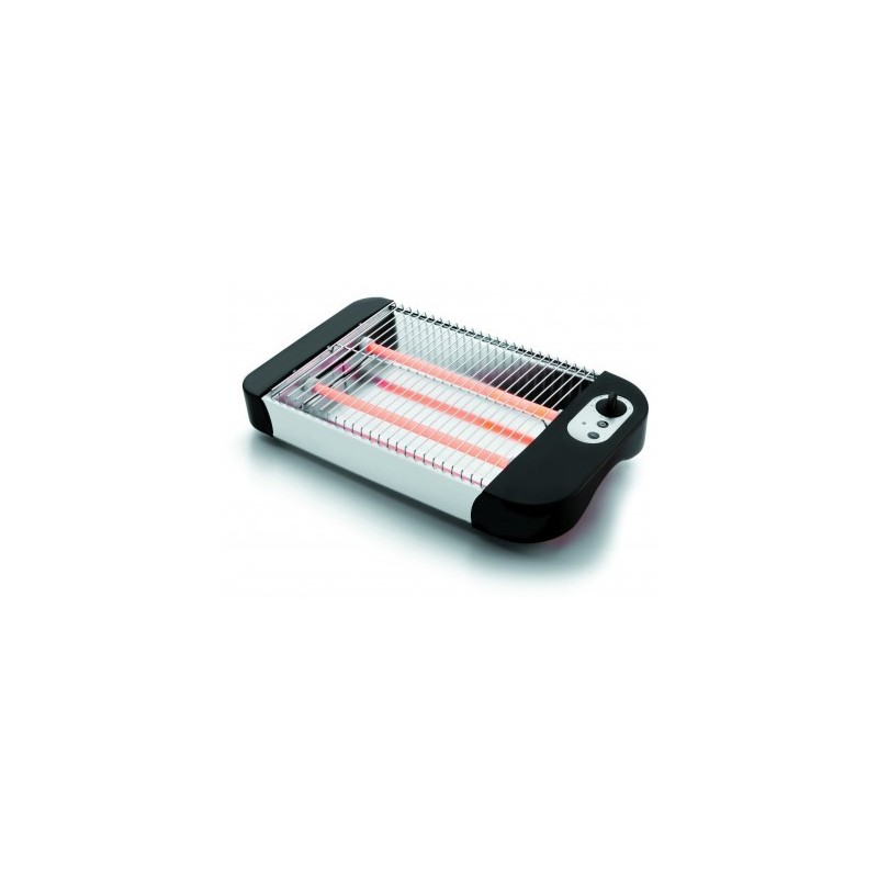Disfrute de desayunos perfectos con las tostadoras de pan eléctricas: permiten tostar el pan de forma rápida, sencilla, sin ensuciar y sin necesidad de añadir grasa alguna, y en los hogares suponen un ahorro energético frente a la opción de usar el horno.La mayoría de las tostadoras eléctricas de uso doméstico son cerradas, con ranuras en la parte superior para introducir las rebanadas. Ahora Lacor ofrece también esta tostadora eléctrica horizontal, que permite tostar no solo todo tipo de pan, desde hogazas a barras (rebanadas más grandes o gruesas), sino también sándwiches y bollería, o tostar por una sola cara. Sáquele partido para preparar tostas como primeros platos, meriendas o cenas ligeras.Esta tostadora eléctrica horizontal está fabricada en acero inoxidable de alta calidad, que ofrece una excelente resistencia a la corrosión y a los ácidos alimentarios y sales y es fácil de limpiar. Estas son sus características técnicas:Temperatura máxima: 360ºC Posiciones de calor: 6 Bandeja recogemigas extraíble Potencia: 600 W Tamaño de la parrilla: 25 x 20 Dimensiones: 36 x 21 x 6.5 cm Peso: 1 KgSeguridad y mantenimiento:La tostadora eléctrica horizontal debe colocarse sobre una superficie firme y seca, dejando alrededor una zona libre de al menos 10 cm. No permita que los niños la empleen.Antes de limpiar la tostadora desenchúfela y espere que enfríe. No introduzca objetos metálicos entre las barras de la parrilla. Extraiga y limpie la bandeja recogemigas después de varios usos.No limpie la tostadora eléctrica horizontal con lejía o productos clorados, use un paño húmedo.Esta tostadora eléctrica horizontal se ajusta a la directiva RoHS CE.