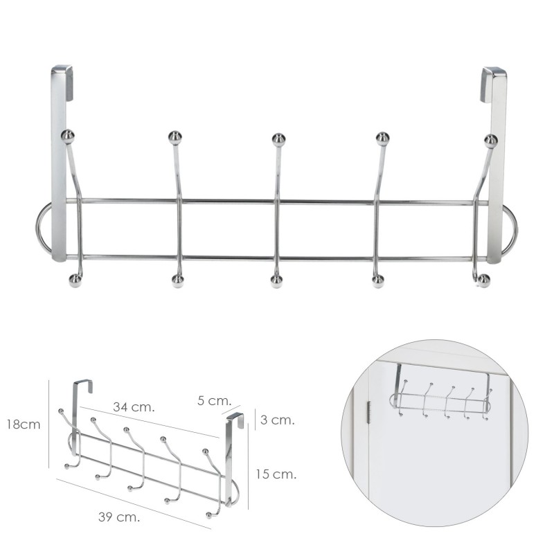 - Perchero para puertas con 10 ganchos individuales o 5 ganchos dobles.