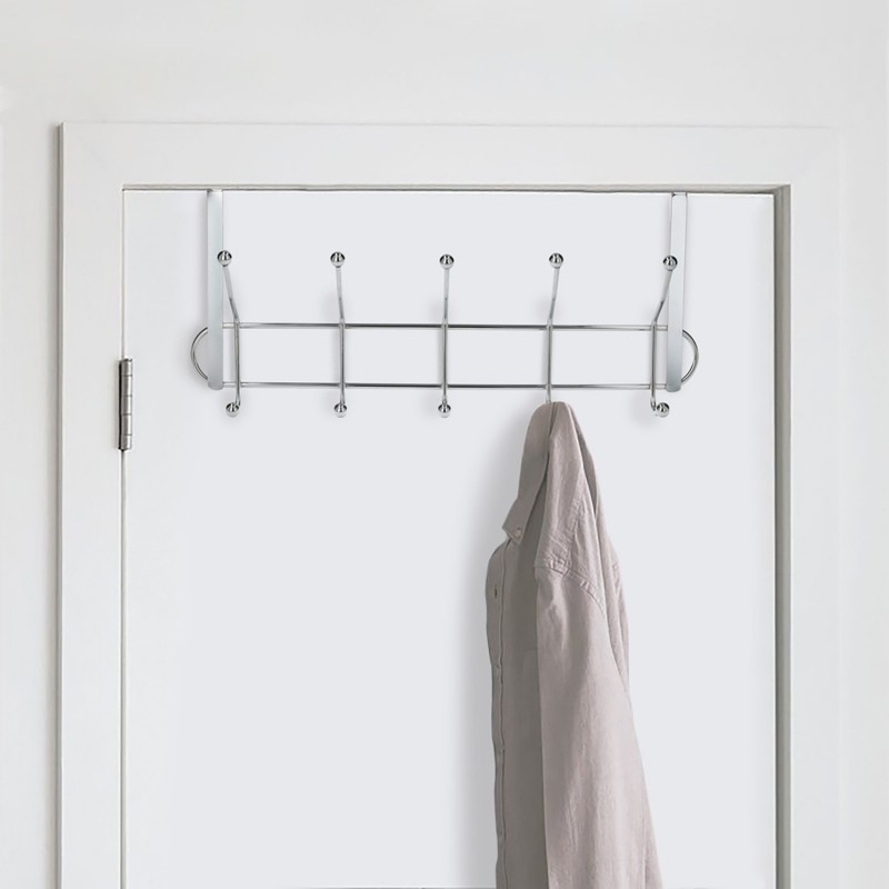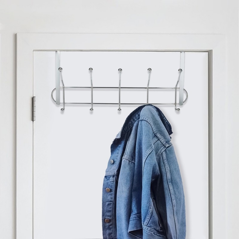 Perchero Cromado Colgante Para Puerta 5/10 Ganchos. Terminacion Metalica. ORYX