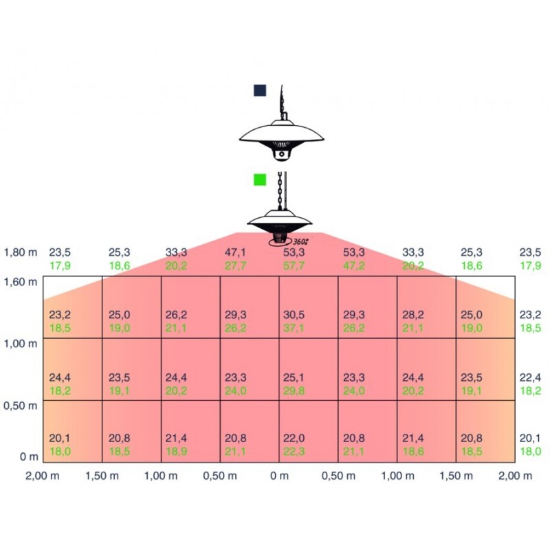 LÁMPARA CALENTADOR ELÉCTRICO 42 X 29 CMLas bajas temperaturas no tienen por qué suponer el cierre de las terrazas y zonas exteriores en los establecimientos; los calentadores eléctricos permiten acondicionarlas para su uso durante todo el año, mejorando su facturación y rentabilidad.Los calentadores eléctricos funcionan mediante lámparas halógenas de rayos infrarrojos. Se trata de una calefacción natural, similar al calor del sol, un calor saludable, sin ruidos, gases ni olores, no produce residuos de combustión ni absorción de oxígeno.Los calefactores eléctricos por infrarrojos no calientan el aire, calientan a las personas y objetos; es una sensación parecida a la de ponerse al sol en un día frío. El calor se dirige a donde se necesita, y no se producen pérdidas por circulación o ascenso del aire; por eso tampoco le afecta mucho el viento, lo que lo hace un sistema óptimo para uso en exteriores. Los infrarrojos proporcionan un calor agradable y una luz cálida que consiguen que los clientes se sientan cómodos en un ambiente confortable.Los calefactores eléctricos por infrarrojos son un método de calefacción sencillo, efectivo y económico, ofrecen alto rendimiento y bajo consumo. No necesitan tiempo de calentamiento, dan calor inmediato al encenderse, con el consiguiente ahorro.Existen distintos tipos de calefactores eléctricos que pueden fijarse al techo, a la pared o bajo sombrillas o toldos, además de los sistemas de pie, facilitando su integración en la decoración del local.Esta lámpara calentador eléctrico tiene las siguientes características:Potencia: 1500 W (máximo) IP:24 (índice de protección, adecuado para uso en exterior) Medidas: Ø 42 x 29 cm Peso: 2.40 kg Encendido, apagado y regulación de potencia mediante cordelMedidas de seguridad:Para su correcta instalación asegúrese de que el techo o la viga de los que vaya a colgarse pueden aguantar el peso de la lámpara. Deje al menos 50 cm libres alrededor de la lámpara calefactor, y un espacio amplio entre la lámpara y las personas, evitando demasiada proximidad al pelo o la cabeza.La lámpara calefactor nunca debe usarse en zonas inundadas o que tengan mucha agua en el suelo: baños, piscinas, saunas. Ni cerca de depósitos de combustibles, pinturas u otras sustancias inflamables. Evite su uso en días lluviosos o de mucho viento.Nunca retire la malla de protección, es esencial para evitar accidentes. No ponga nada encima de la lámpara. No toque la lámpara calefactor mientras esté encendida o mantenga calor.