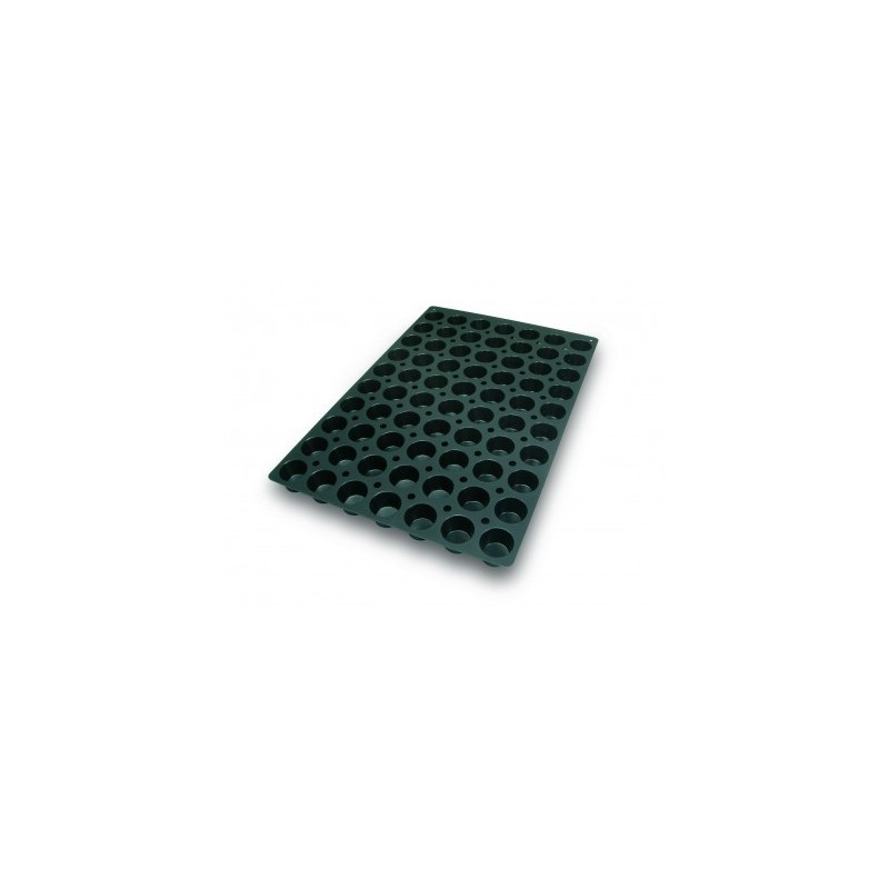 Lacor le ofrece moldes antiadherentes y flexibles fabricados con silicona, material totalmente apto para uso alimentario; es estable e inerte, antiadherente y flexible, duradero, higiénico y fácil de limpiar (lavavajillas), no transmite sabores ni olores y es muy ligero, apenas pesa. La silicona, además, soporta fuertes cambios de temperatura, directamente desde la congelación al horneado; la silicona con que están elaborados estos moldes admite temperaturas entre -60ºC y 230ºC. Por eso los moldes de silicona son utilizables en la mayoría de los procesos de horneado (ideales para hornos estáticos, rotatorios o microondas, y líneas de procesado automático) y congelación, sustituyendo a las bandejas metálicas.Estos moldes de silicona NO admiten uso directo sobre fuentes de calor (fuego, grill, placas eléctricas). Para su uso óptimo los moldes de silicona deben colocarse sobre una placa de horno o parrilla, que facilitarán la difusión del calor durante el horneado. En nuestra página puede encontrar la parrilla de acero inoxidable para moldes de silicona referencia 67100 ideada para este uso.La antiadherencia y flexibilidad de la silicona de estos moldes permite desmoldar fácil y perfectamente los productos horneados. Nunca corte productos sobre los moldes.Después de cada uso los moldes de silicona deben lavarse a mano o con lavavajillas. Ofrecen una excelente resistencia al ciclo de lavado sin perder sus características. No use esponjas abrasivas ni disolventes.Las medidas de estos moldes de silicona son 60 x 40 cm, lo que los hace perfectos como herramientas profesionales. Dentro de esta gama de moldes de silicona encontrará distintos perfiles para productos dulces y salados. Este molde para mini muffins cuenta con 70 cavidades, cuyas medidas son 45 mm x 30 mm de profundidad (40 ml capacidad).Para los aficionados a la repostería o cocina que quieran conseguir resultados de profesionales recomendamos los moldes de silicona de la serie Pastryflex (medidas 30 x 17,5 cm), que pueden encontrar también en nuestra página y que es igualmente apta para uso profesional (3 moldes en bandejas GN 1/1 y 4 moldes en bandejas 60x40 cm)