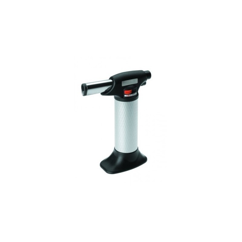 Hace tiempo que los profesionales han incorporado a sus cocinas la pistola de gas (o soplete), y ahora está encontrando su lugar en las cocinas de muchos hogares. Aunque la llamemos pistola de gas (o soplete) para repostería, su empleo en la cocina es más amplio. No solo carameliza azúcar (en cremas, tartas, arroz con leche, sobre fruta) y tuesta merengues; también podrá utilizarlo para fundir queso, gratinar de forma rápida pequeñas superficies, dar un toque tostado y crujiente a la carne, asar verduras, quemar la piel de tomates y pimientos para pelarlos, quemar los plumones de las avesLas pistolas de gas para repostería de Lacor le permitirán trabajar de forma segura y fácil. Existen 4 modelos distintos, todos ellos con diseño ergonómico, empuñadura cómoda y resistente, y estas características comunes:Autoencendido por piectric eléctrico Recargable con gas azul universal (cargador de mecheros), fácil rellenado. Portátil, sin cables, ligero. Llama antirretorno. Control ajustable de la llama. Sistema seguro de blocaje. Base estable para apoyar de pie sobre encimera.La pistola de gas para repostería Profesional tiene una altura de 16 cm y una capacidad de gas de 40 ml.Seguridad:Mantenga la pistola de gas para repostería alejada de los niños.Tenga cuidado si el alimento sobre el que va a dirigir la llama del soplete de cocina está pinchado en un utensilio de madera (brocheta o palillo) para evitar que prenda fuego Si está pinchado en un utensilio metálico, tenga precaución: puede transmitir el calor a sus manos.Si va a utilizar la pistola de gas para repostería para dorar o caramelizar, no dirija la llama directamente al recipiente para evitar que el calor lo haga estallar.