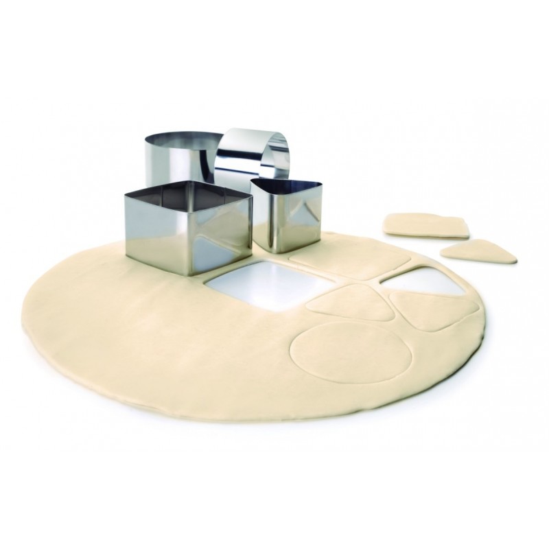 Juego aros de repostería con forma de Lacor, con dos aros redondos, uno cuadrado y otro triangular. Perfecto para la repostería.