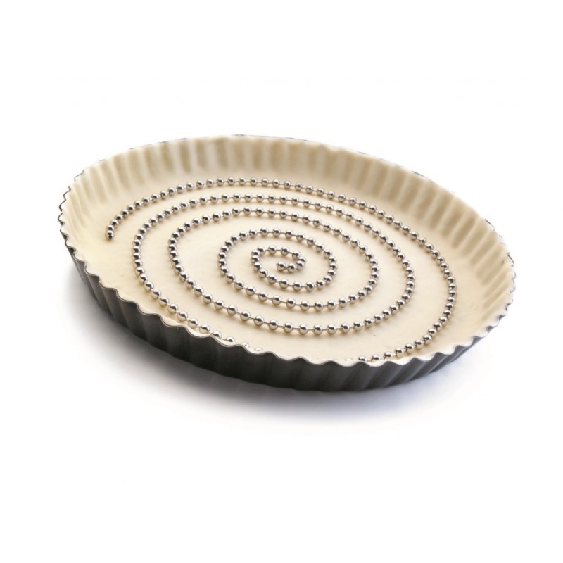 Cadena de repostería inoxidable de Lacor fabricada en acero 18/10, especialmente resistente a la corrosión.1.8 metros de longitud, perfecta para que la masa de las tartas no se levante sin necesidad de agujerearla.