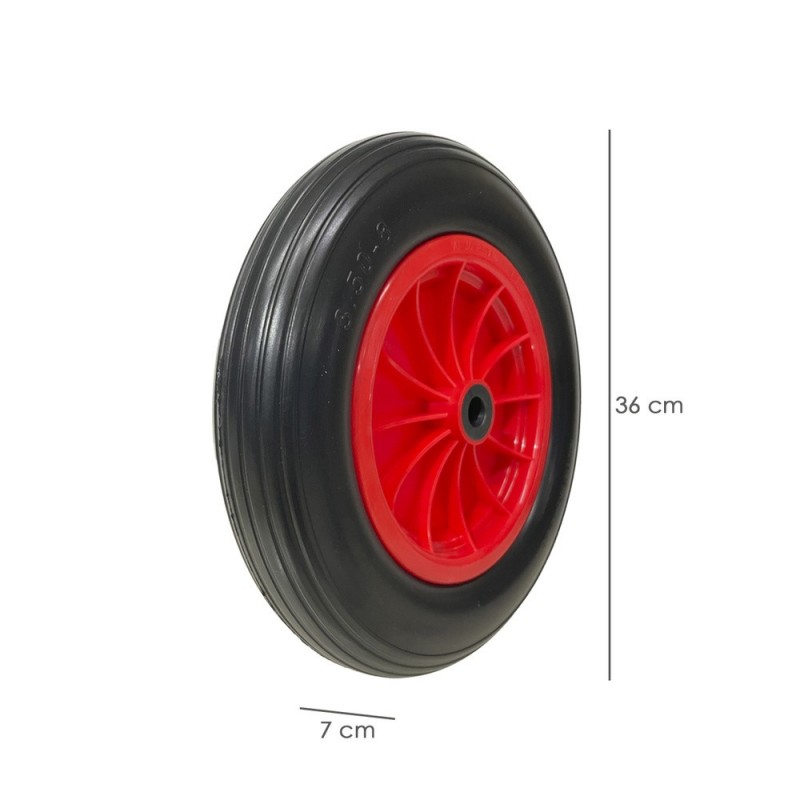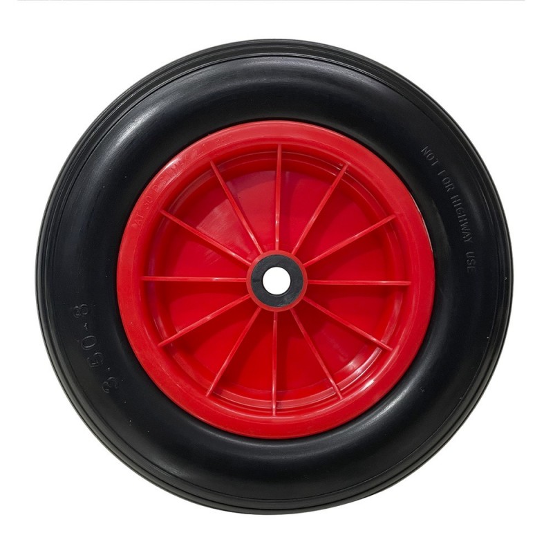 Rueda Carretilla Invernadero Poliuretano Impinchable Llanta Plástico, Ø 360 mm. Eje Ø 20 mm. WOLFPACK LINEA PROFESIONAL