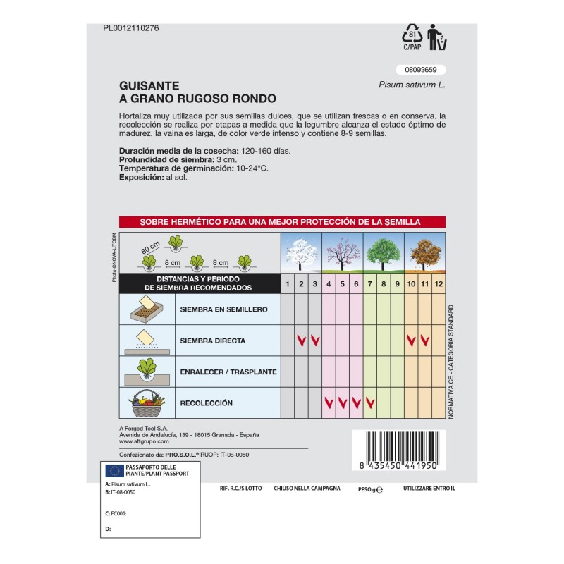 - Temperatura de germinación: 10-24°C.