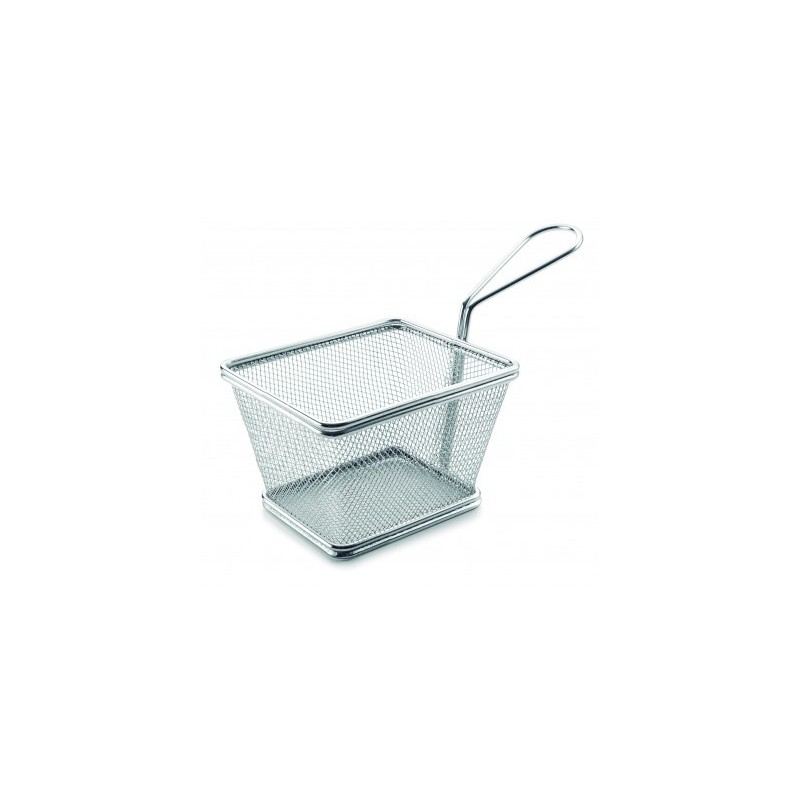 Fabricados en acero inoxidable. Una forma elegante y original de servir toda clase de aperitivos y tapas. La presentación puede ser sobre papel absorbente o bien directamente sobre el cestillo.Referencia Medida (cm) Altura (cm) 61007 10x8 7 61052 12x10 9