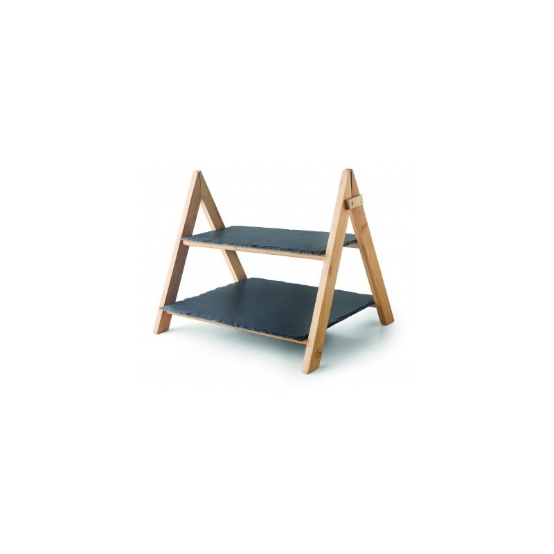 Impresione a sus invitados con el Soporte expositor rectangular pizarra, una pieza esencial para cualquier anfitrión que valore la presentación sublime y el estilo. Este soporte de dos alturas, fabricado por Lacor, ofrece una forma atractiva y original de servir y presentar aperitivos dulces o salados.El soporte está compuesto por una estructura de bambú 100% natural, conocida por su fortaleza y resistencia. Su diseño desmontable facilita enormemente la limpieza y el almacenamiento, lo que añade un toque de conveniencia a su uso diario.Lo más destacado del Soporte expositor rectangular pizarra son sus dos bandejas extraíbles fabricadas en pizarra 100% natural. Este material no solo aporta un aspecto rústico y elegante, sino que también asegura la durabilidad del producto. Con una distancia de 12,5 cm entre las pizarras y una altura total de 34 cm, este soporte proporciona suficiente espacio para exhibir una variedad de bocados deliciosos.Este soporte exhibidor no es solo un accesorio funcional, es también una declaración de estilo en su cocina o sala de estar. La combinación del bambú natural con la pizarra natural crea un contraste visual atractivo que seguramente captará la atención de sus invitados.En definitiva, el Soporte expositor rectangular pizarra es mucho más que un simple utensilio para servir alimentos: es una obra maestra diseñada para mejorar cualquier presentación culinaria y convertirla en una experiencia inolvidable. No espere más para añadir este toque de elegancia a su hogar.