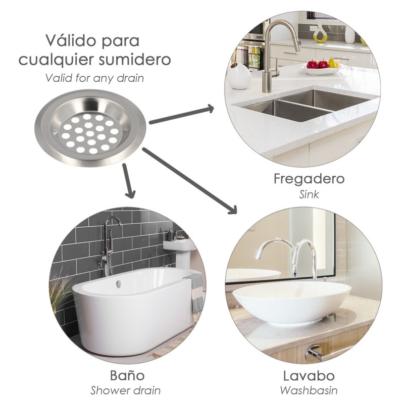 - Puede ser usado en sumideros, fregaderos, ducha, etc.