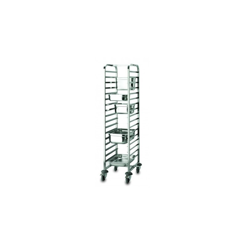 Carro porta bandejas de Lacor. Para tamaño 60 x 40 cm. Tamaño: 45 (frente) x 62 (fondo) x 172 (altura ) cm. Cuenta con 20 baldas. Estable y resistente