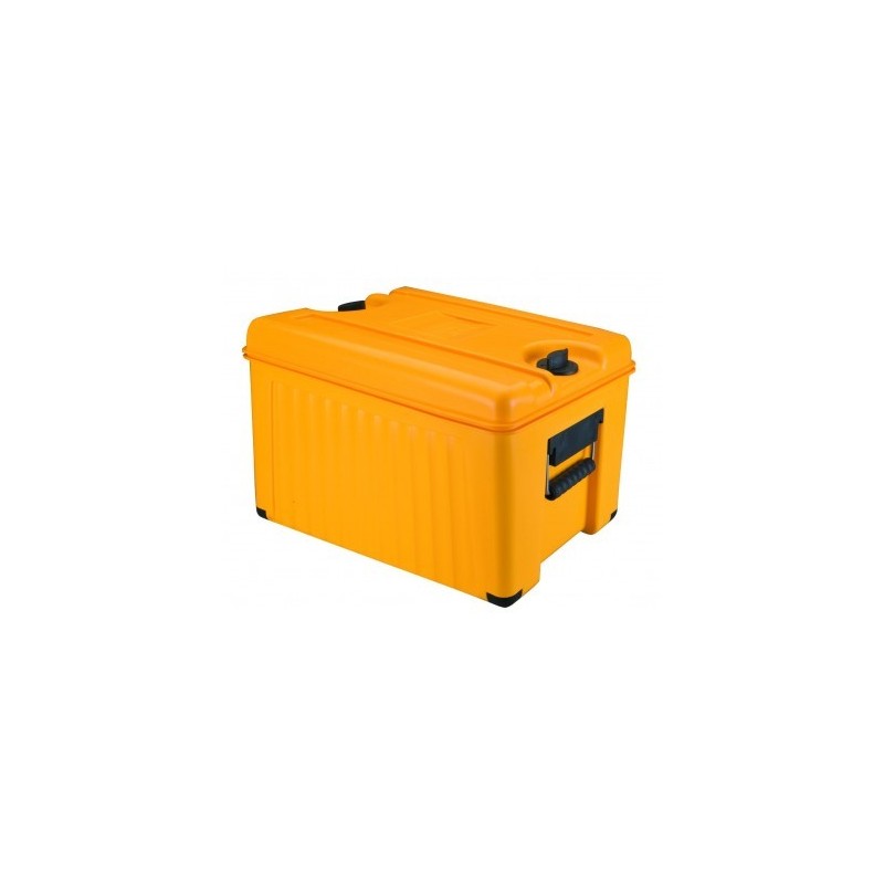 Contenedor isotérmico para transporte de cubetas Gastronorm, perfecto para transporte de alimentos en caterings. Este contenedor isotérmico es rígido, ligero, robusto y apilable. Dispone de puerta sin bisagra, con sistema de cierre en la tapa. Los Termotrans Lacor tienen alta eficiencia en la conservación de temperaturas: Pérdida de calor en alimentos calientes: temperatura inicial 70º C; al cabo de 1 hora: 67º; a las 2 horas: 65º; a las 3 horas: 64º; al cabo de 4 horas: 62º C. Pérdida de frío: temperatura inicial 3º C; al cabo de 1 hora: 3.5º; a las 2 horas: 4º; a las 3horas: 4.5º; al cabo de 4 horas: 5º C. El Termotrans 300 tiene un tamaño de 41x62x37 cm y una capacidad de 34 litros. Adecuado para 2 cubetas GN 1/2 (200); o 3 cubetas GN 1/3 (200); o 4 cubetas GN 1/4 (200)