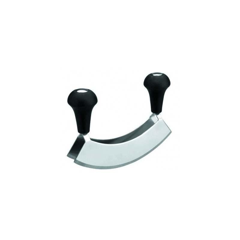 Corta verduras manual con doble cuchilla de Lacor fabricado en acero inoxidable 18/10. Con su diseño en forma de media luna con dos filos coordinados permite picar verduras con rapidez y comodidad.