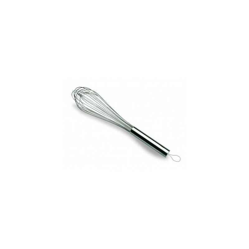 El batidor de mano es un utensilio imprescindible en toda cocina, perfecto para mezclar los alimentos: mezcla y remueve aligerando los ingredientes al permitir la entrada de aire.El batidor está compuesto por un mango en el que se une un número variable de alambres, las varillas, que generalmente toman una forma redondeada, como una esfera hueca, diseño que facilita la mezcla y la entrada de aire a los ingredientes. Por eso es fundamental para elaborar muchas recetas en repostería.El mango y las varillas del batidor Súper 12 de Lacor son de acero inoxidable 18/10 (aleación superior al acero convencional, más resistente y duradero).El batidor Súper 12 tiene un diseño ergonómico y es indeformable, por eso su manejo le resultará cómodo y se mantendrá en perfectas condiciones durante mucho tiempo. Además tiene un número mayor de varillas que un batidor manual convencional, finas y muy resistentes para batir todo tipo de mezclas.El batidor manual Súper 12 se fabrica en varios tamaños; puede seleccionar el más adecuado a sus necesidades en el desplegable al lado de la fotografía.