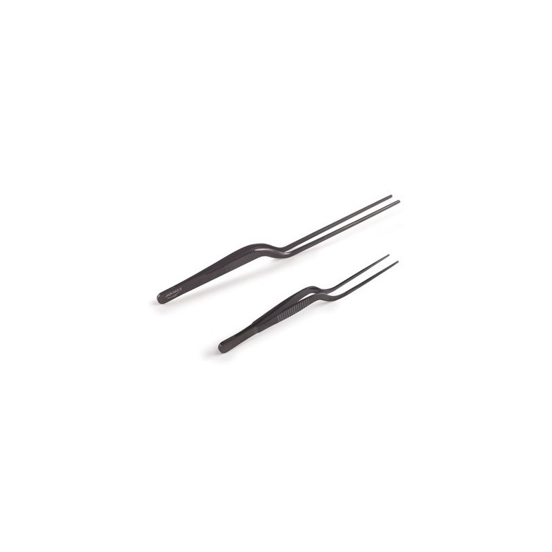 Ideales para manipular y emplatar tus creaciones a la perfección. Mango antideslizante y puntas acanaladas para una sujeción 100% segura. Gracias a su forma, te permitirá acercarte más a los platos sin tocarlos.