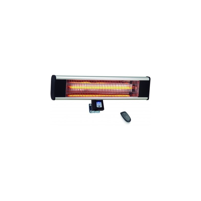 Calor instantáneo, con una fuente de calor de fibra de carbono de alta eficiencia. Incluye un soporte de pared con regulación angular para direccionar el calor. Seguro y respetuoso con el medio ambiente, no produce ni ruidos ni olores. Equipado con un control remoto para poder encender y apagar. Cuerpo de aleación de aluminio anodizado. 1,8 metros de cable.Referencia Tensión Potencia Lámparas Niveles de calentamiento Angulo de giro Nivel de protección Dimensiones Peso 69425 220-240V;50/60 HZ 1800 W 1 1 25º IP44 65X21,5X24,5 CM 2,40 KG